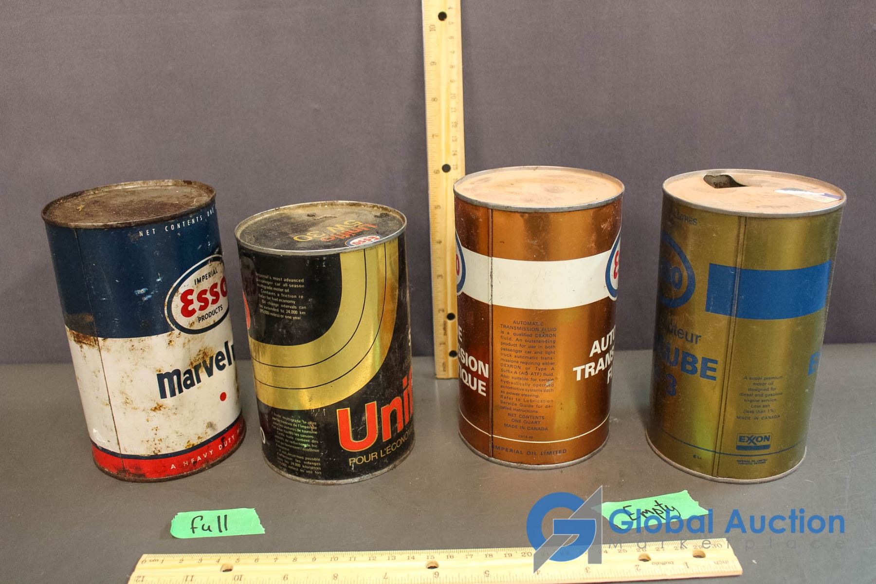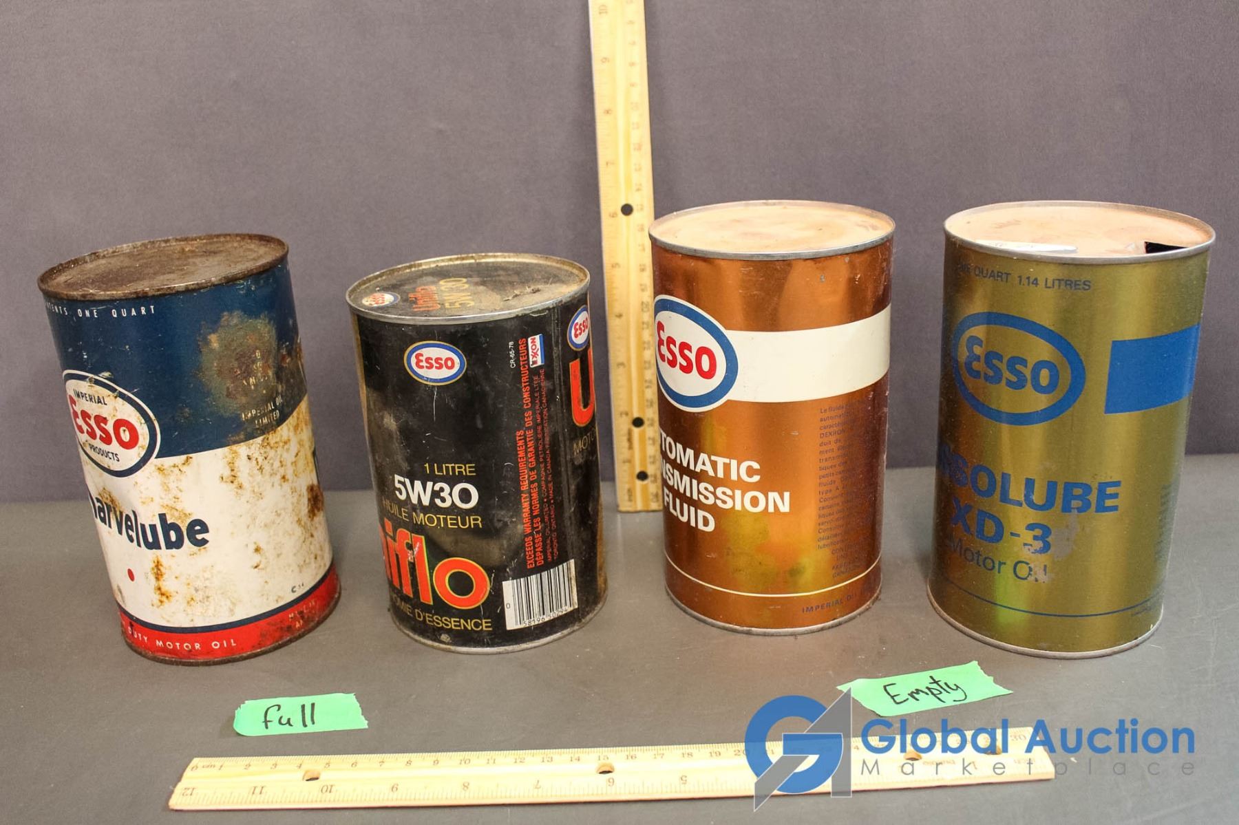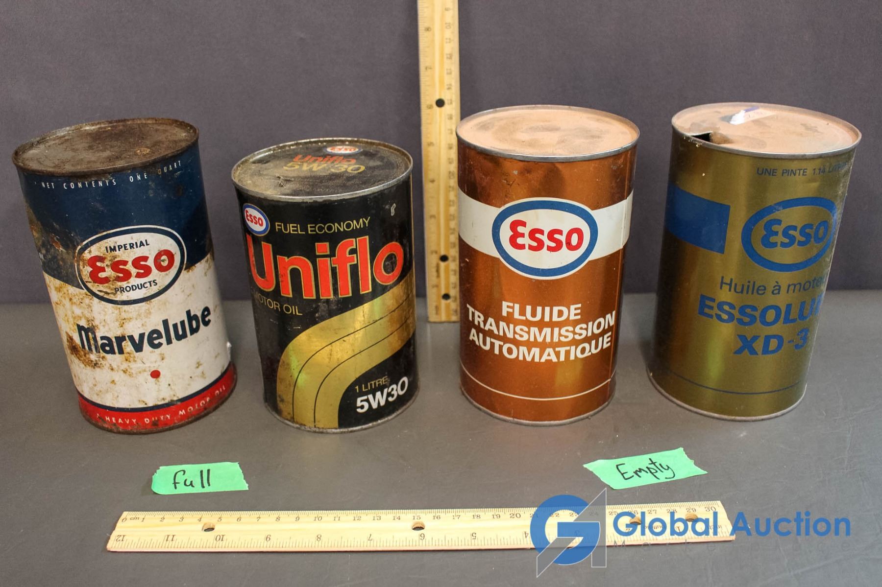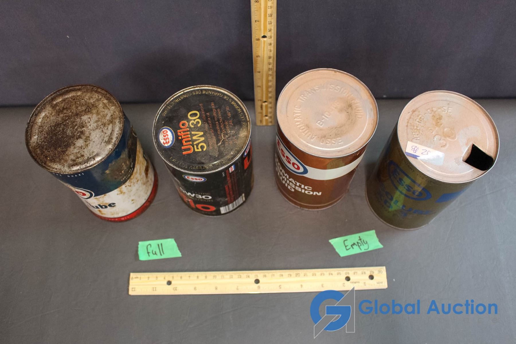 Esso 1 Quart Tins (3) 1 Litre Tin(1) Automatic Transmition Fluid, Oil, Marvel Lube