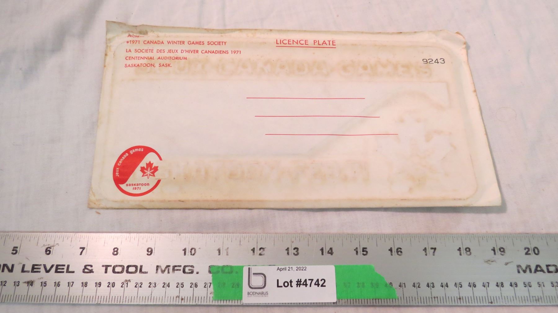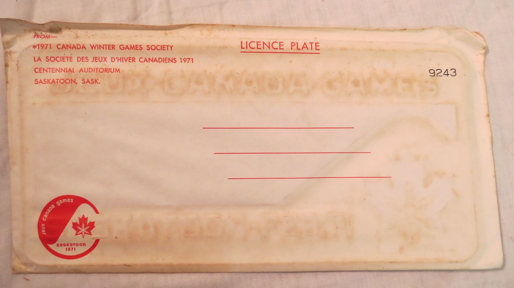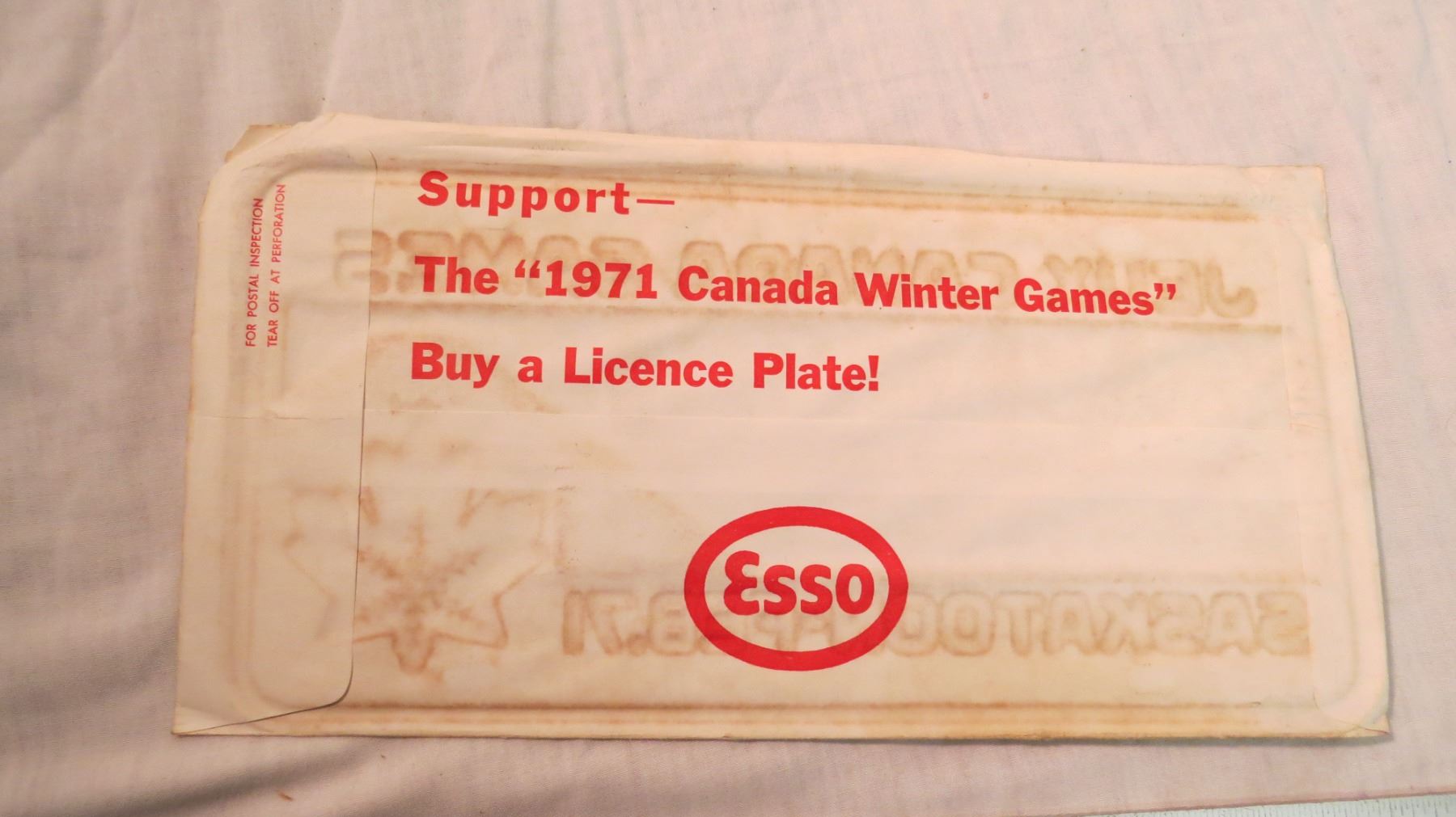 Esso 1971 Canada winter games license plate in envelope - never opened Saskatoon