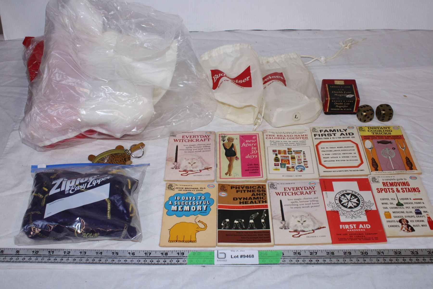 Esso Booklets,dice,Budweiser windbreaker,misc items