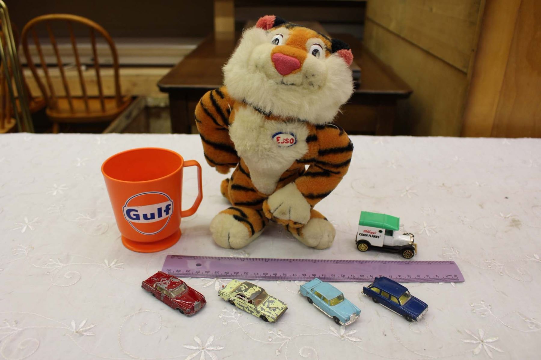Esso Stuffed Tiger, Toy Cars& A Gulf Cup