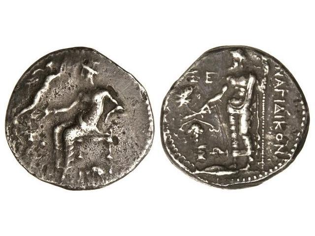 Estátera. 356-333 a.C. NAGIDOS. Anv.: Afrodita entronizada a izquierda, delante Eros volando. Rev.: Dionisos en pie a izquierda, detrás leyenda, delante racimo de uvas. 9,70 grs. AR. Se-5587. MBC/MBC+.