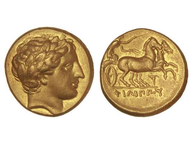 Estátera. 359-336 a.C. FILIPO II. MACEDONIA. Anv.: Cabeza laureada de Apolo a derecha. Rev.: Biga a derecha. En exergo: leyenda. 8,50 grs. AU. Restos de brillo original. Se-6663 var. EBC-.