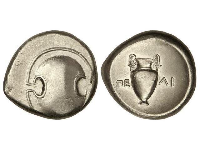 Estátera. - BEOCIA. - TEBAS. - Anv.: Escudo beocio. Rev.: Ánfora entre ¶-¶. 12,40 grs. AR. Se-2395 var. EBC-/EBC. - -