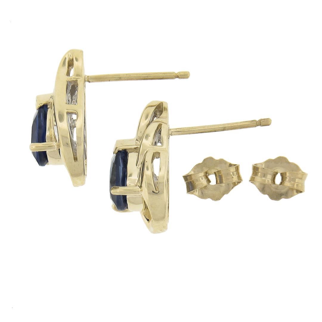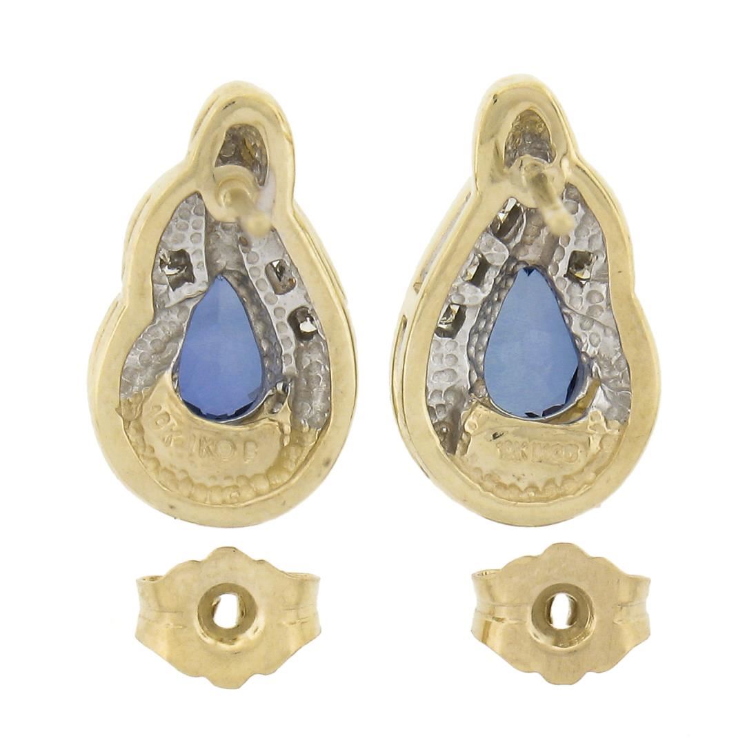 Estate 10K Gold Pear Blue Stone w/ 0.10 ctw Round Diamond Tear Drop Stud Earring