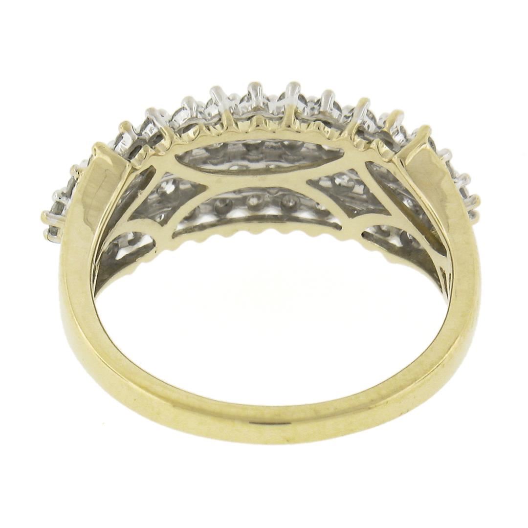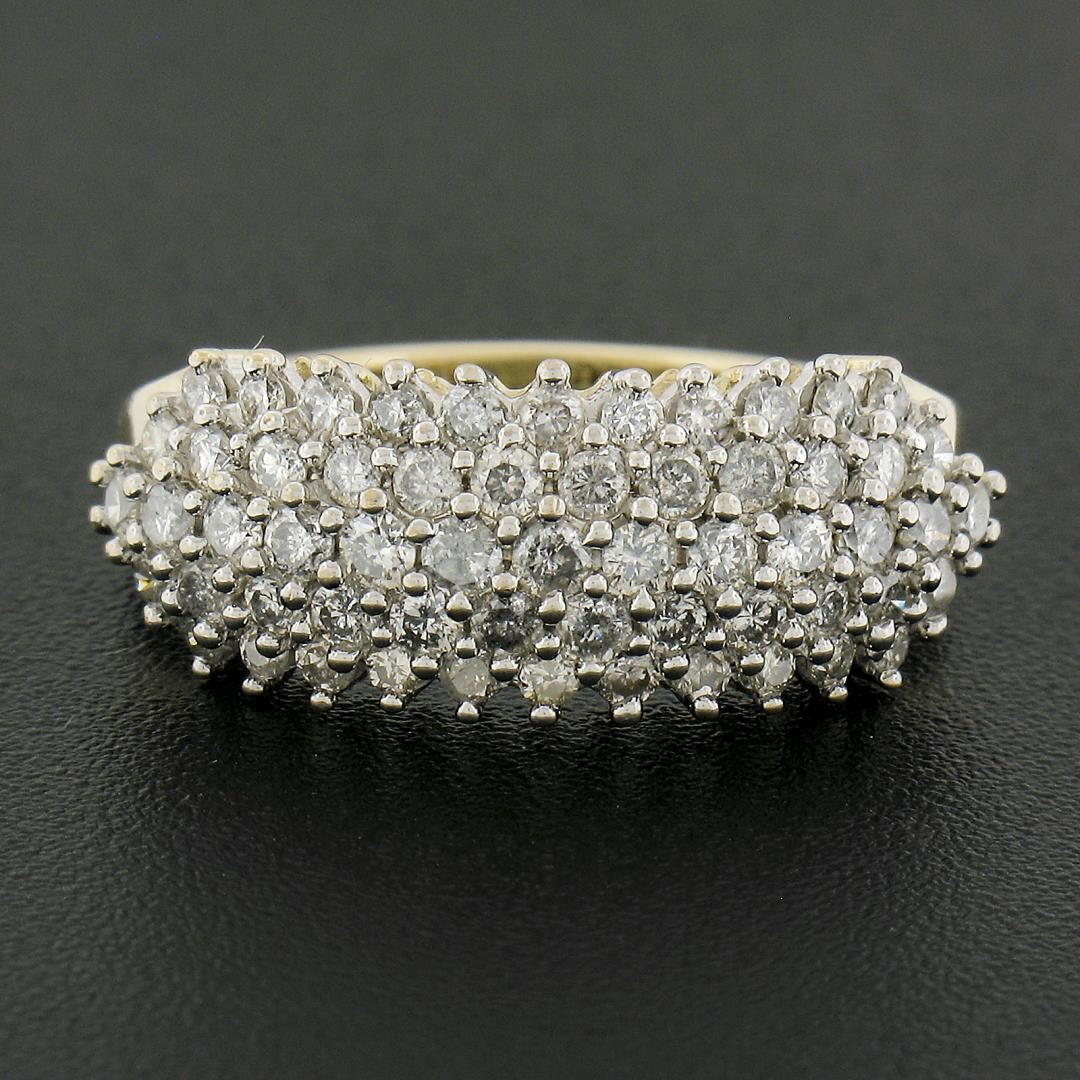 A solid 10k yellow & white gold 5 row ring, with 50 round cut natural diamonds (G-I - I2/I3 ; 1.0ctw). The ring is size 6.5, weighs a total of 3.21 grams, and measures 8.4mm wide.