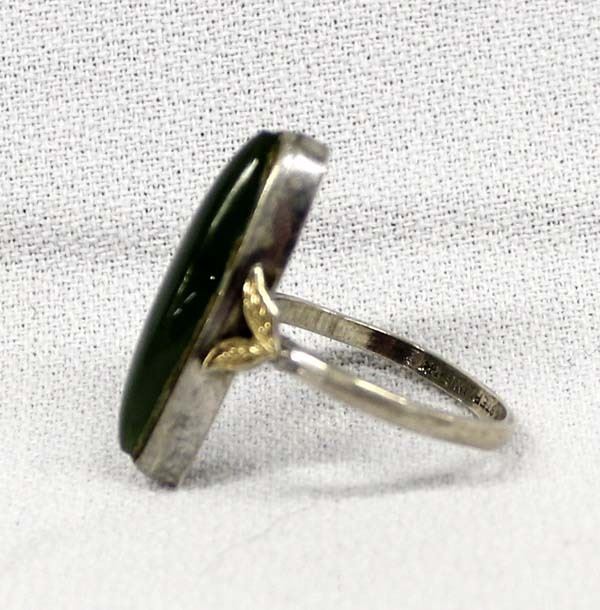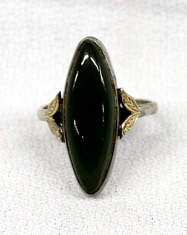 Estate 10KT Gold, Sterling, and Jade Ring, Sz 7.5