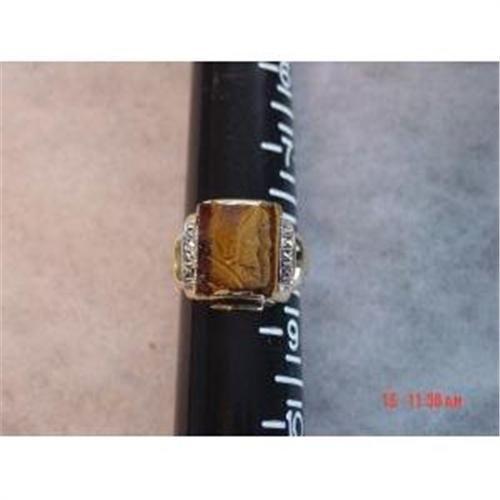 <tr><td>Title:Estate 10kt RING Men Tiger Eye Intaglio Warrior</td></tr>
