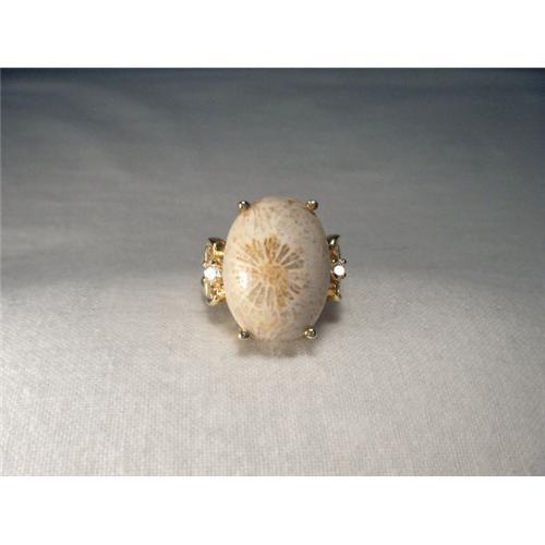 <tr><td>Title:Estate 14K Flower Jasper Diamond Filigree Ring</td></tr>