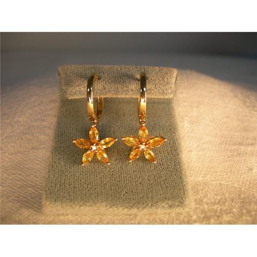</font></strong>You are looking at a pair of estate 14K yellow gold hoop earrings with citrines and diamonds. Each piece in this beautiful set features 5 natural marquise shaped citrines, each measuring 5 mm long by almost 3 mm wide in a floral design. There is one brilliant round diamond measuring a bit under 1 mm in diameter at the center of each flower. Eac earring measures 1 inch in length. The pair weighs 3.9 grams. They are in mint condition.</font>