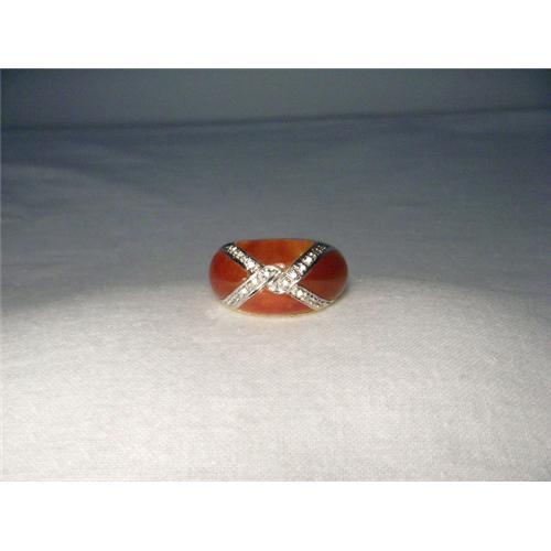 <tr><td>Title:Estate 14K Gold Designer Jade X Diamond Band</td></tr>
