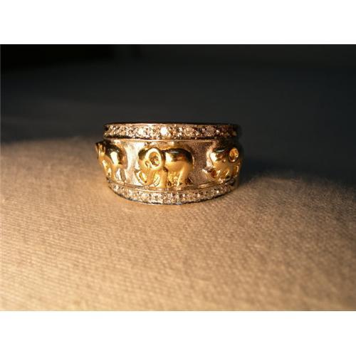 <tr><td>Title:Estate 14K Gold Diamond Elephant Band Ring</td></tr>