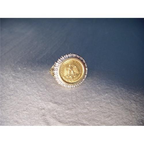 <tr><td>Title:Estate 14K Gold Diamond Mexican Pesos Coin Ring</td></tr>