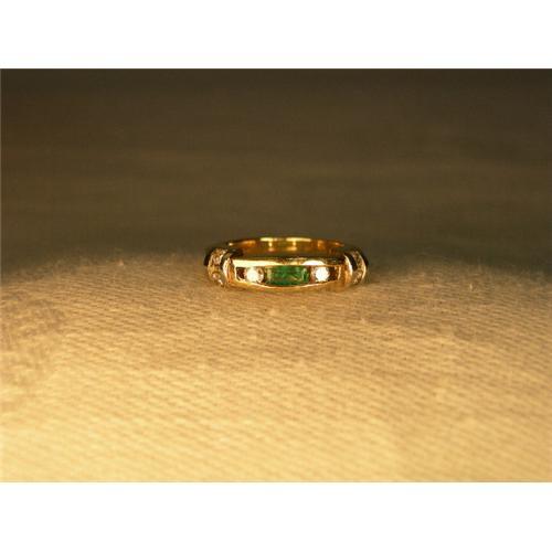 <tr><td>Title:Estate 14K Gold Emerald Diamond Stacking Band</td></tr>