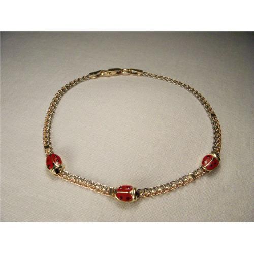 <tr><td>Title:Estate 14K Gold Enamel Movable Ladybug Bracelet</td></tr>
