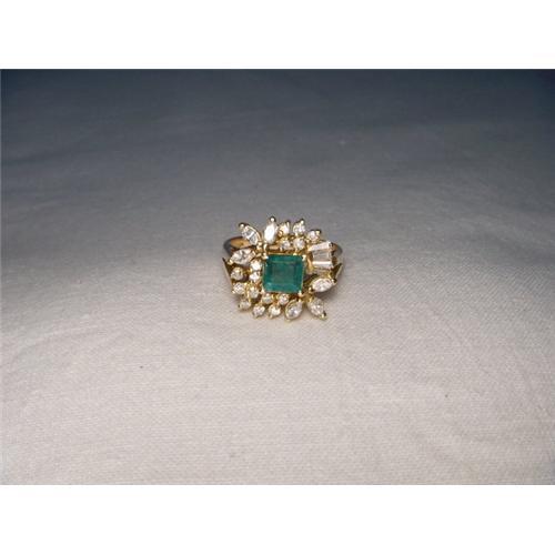 </font></strong>You are looking at an estate 14K yellow gold filigree diamond and emerald ring. This beautiful piece features one square natural emerald with 6 mm sides, surrounded by several baugette, marquise, and brilliant round diamonds. The top of the ring measures 5/8 of an inch wide. The ring is a size 6. Sizing is available. It weighs 4.9 grams. It is in mint condition. </font>