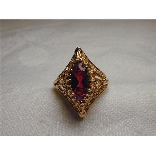 You are looking at a beautiful estate 14K yellow gold filigree garnet ring. The center natural marquise shaped garnet measures 7 mm by 14 mm and is set in a stunning yellow gold filigree design. The top of this ring measures 1 inch wide. It is a size 8. Sizing is available. It weighs 7.1 grams. It is in mint condition.