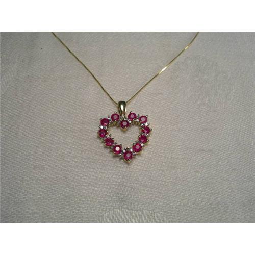 You are looking at an amazing estate 14K yellow gold heart pendant with diamonds and rubies. This beautiful piece features 24 brilliant round diamonds and 12 natural rubies, each measuring 3 mm in diameter. The pendant measures almost one inch long by 3/4 of an inch wide. It weighs 3.4 grams. It is in mint condition.