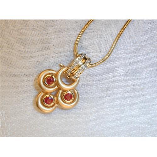 <tr><td><font size="2" face="Arial, Helvetica, sans-serif"><strong><font color="#000033">Title:</font></strong>Estate 14K Gold Ruby Diamond Pendant Enhancer</font></td></tr>