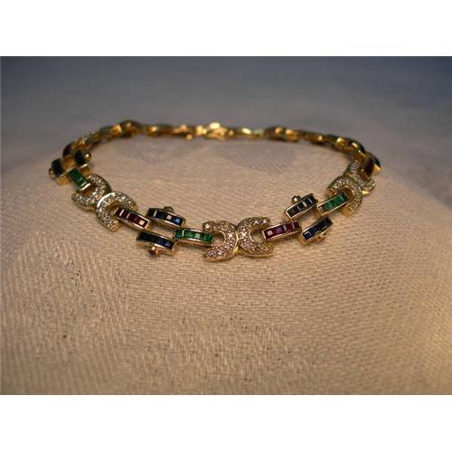 <tr><td>Title:Estate 14K Gold Ruby Sapphire Emerald Bracelet</td></tr>