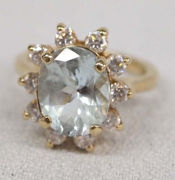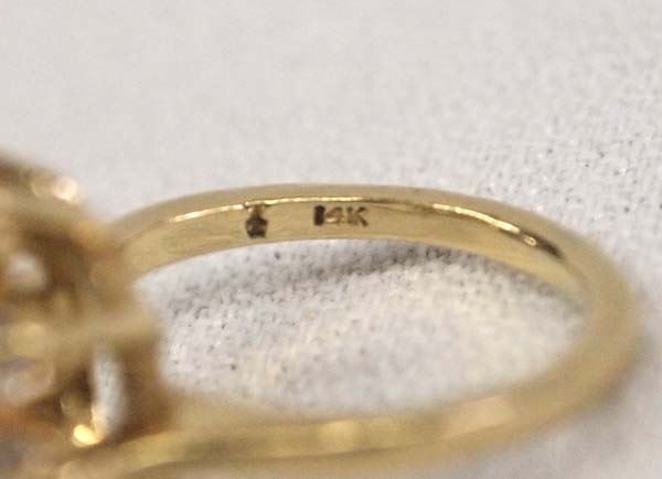 From the Posey Estate, we have a Stunning 14K Gold and Topaz Ring, Size 3.75, measures .5'' x .5'', 4.57g in total wt.