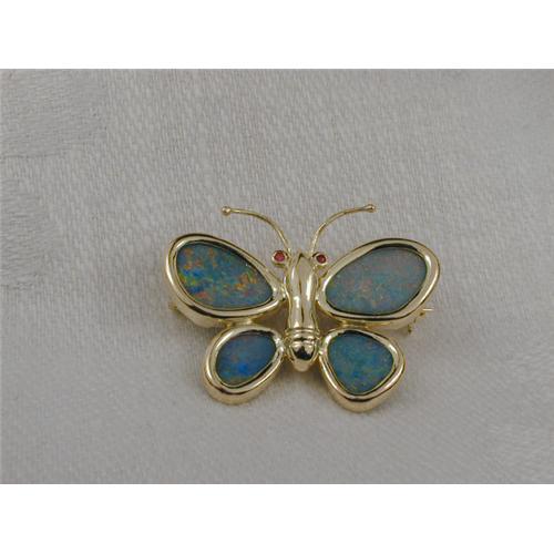 <tr><td>Title:Estate 14K Opal Ruby Butterfly Brooch Pendant </td></tr>