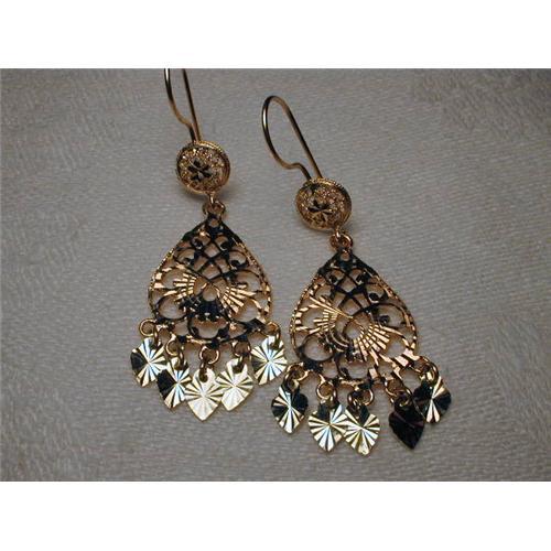 <tr><td>Title:Estate 14K Pink Gold Filigree Hanging Earrings</td></tr>