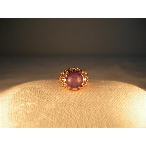 <tr><td>Title:Estate 14K Rose Gold Filigree Star Ruby Ring</td></tr>