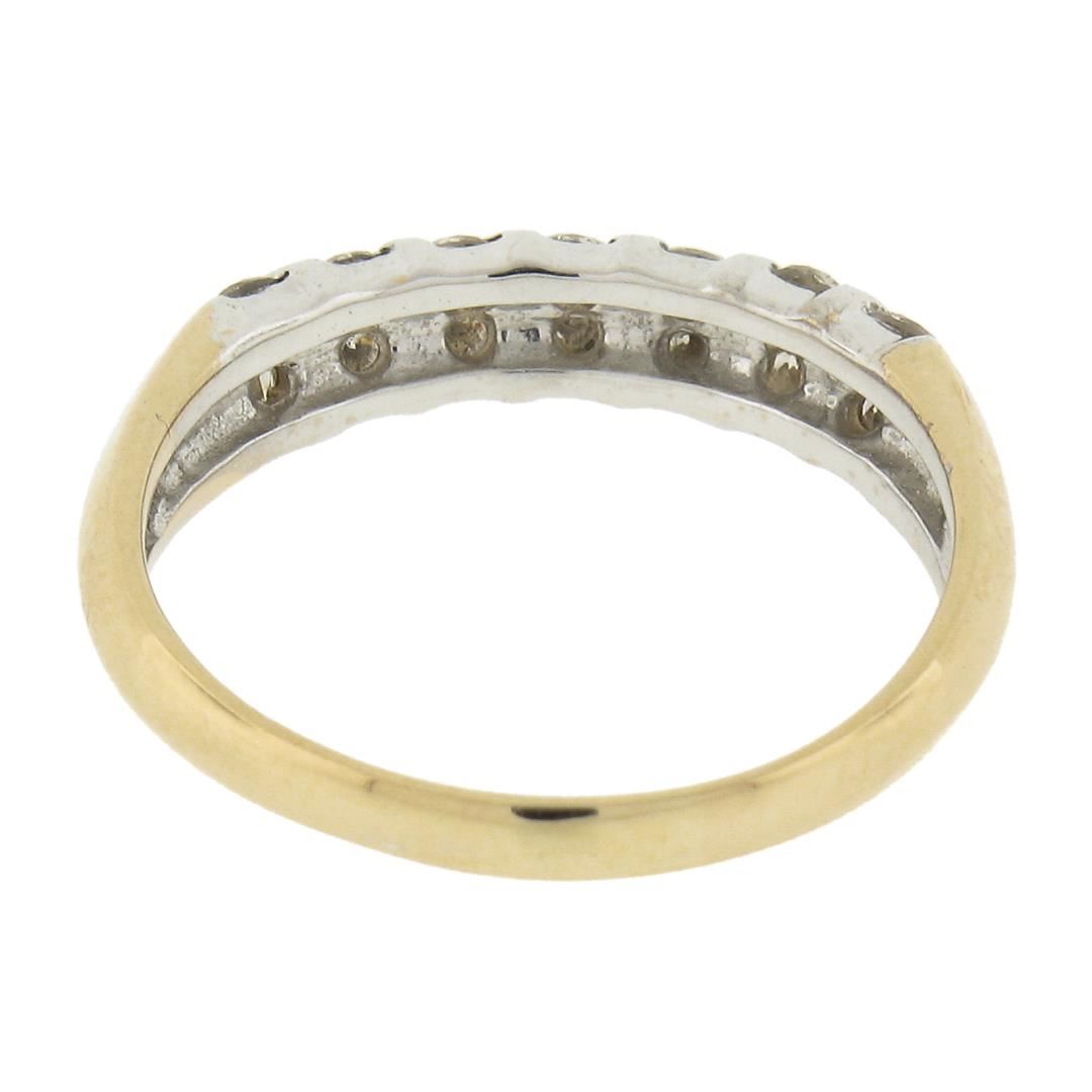 A solid 14k yellow & white gold band ring, with 14 round cut natural diamonds (H/I - SI2-I2 ; 0.30ctw). The ring is size 7.5, weighs a total of 3.02 grams, and measures 4.1mm wide.