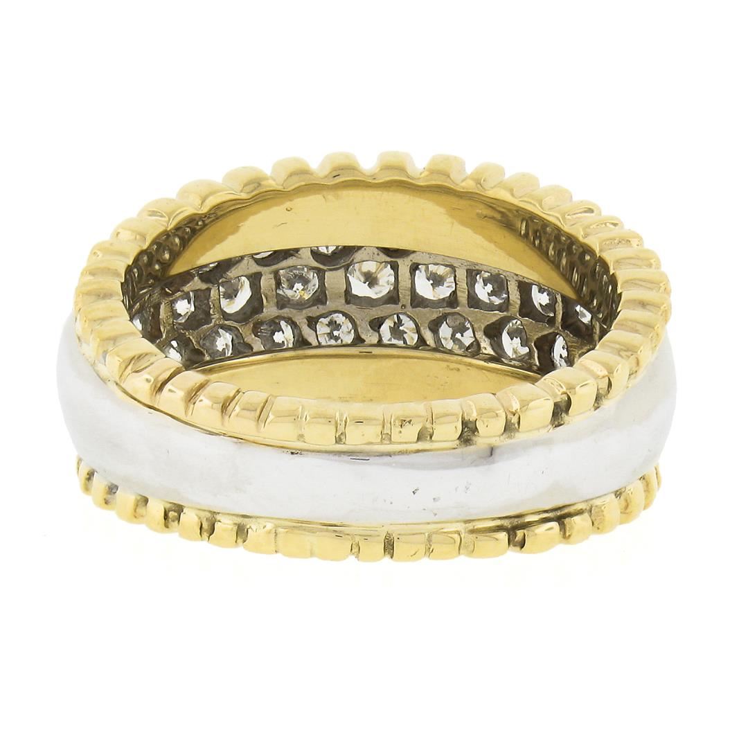 A solid 14k yellow & white gold band ring, with round cut natural diamonds (G-I - SI1/SI2 l; 1.0ctw). The ring is size 6.5, weighs a total of 4.22 grams, and measures 5.6mm wide.
