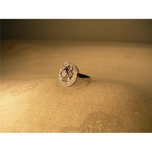 <tr><td>Title:Estate 14K WG Black Diamond Filigree Disc Ring</td></tr>