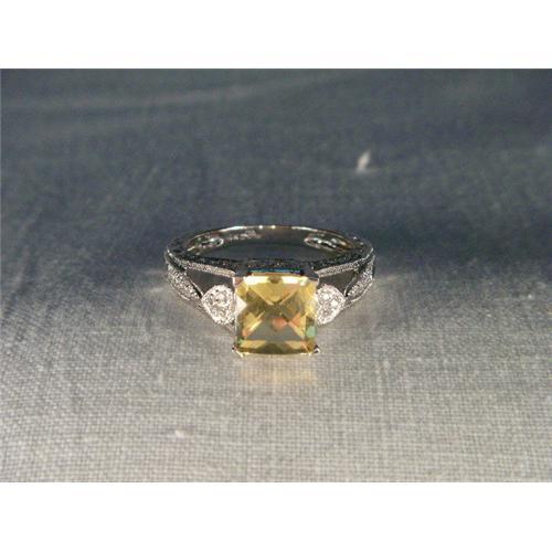 <tr><td>Title:Estate 14K WG Citrine Diamond Filigree Ring</td></tr>