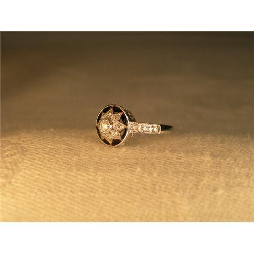 <tr><td>Title:Estate 14K WG Enamel Diamond Star Filigree Ring</td></tr>