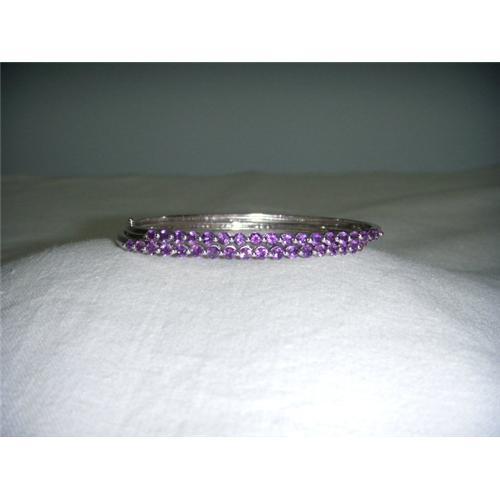 You are looking at a lovely estate 14K white gold bangle bracelet with amethyst. Each of the 18 natural amethyst stones measure 2 mm in diameter. The bracelet measures 2.5 inches from side to side and 2 inches from top to bottom. It can fit up to a 7.5 inch wrist. It weighs 6.6 grams. It is in mint condition.
