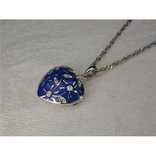 <tr><td>Title:Estate 14K WG Gold Diamond Enamel Heart Locket</td></tr>