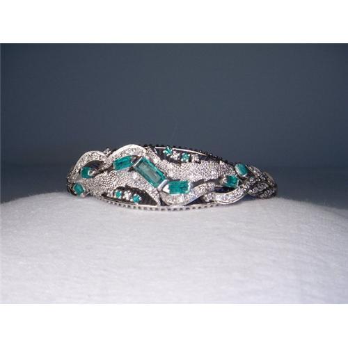 <tr><td>Title:Estate 14K WG Gold Emerald Diamond Bangle</td></tr>