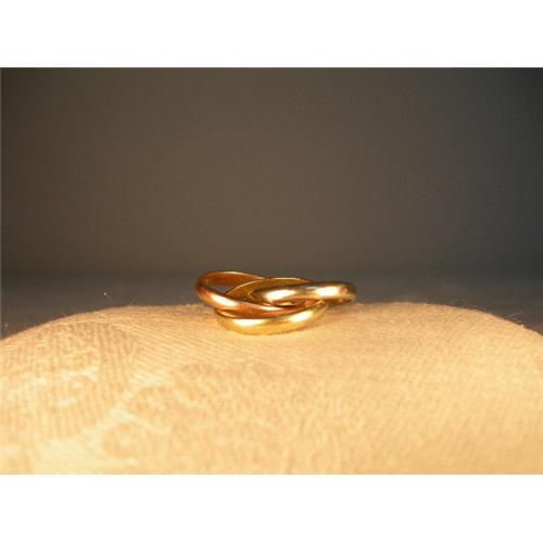 You are looking at an estate 14K tri-color rolling ring. There are 3 rings in one. One is yellow, the other one is pink and the last one is white. Each ring is a size 5. Sizing is available. All rings together weigh 5.7 grams. The piece is in mint condition.