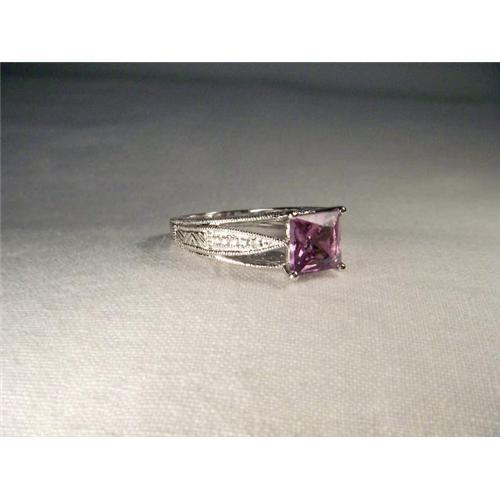 <tr><td>Title:Estate 14K WG Princess Amethyst Diamond Ring</td></tr>
