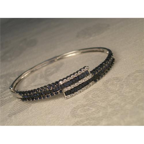 <tr><td>Title:Estate 14K WG Sapphire Diamond Bangle Bracelet</td></tr>
