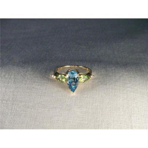 <tr><td>Title:Estate 14K YG Blue Topaz Peridot Diamond Ring</td></tr>