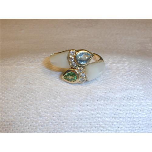 <tr><td>Title:Estate 14K YG Diamond Peridot Blue Topaz Ring</td></tr>
