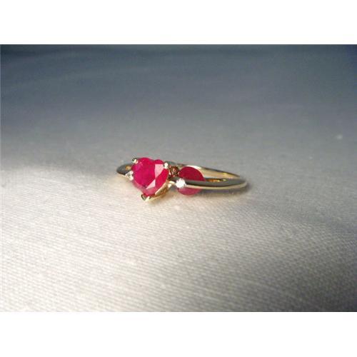 <tr><td>Title:Estate 14K YG Diamond Ruby Tri-Stone Heart Ring</td></tr>