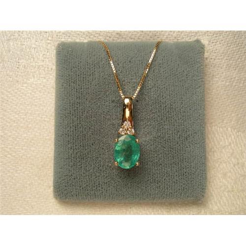 You are looking at a amazing estate 14K yellow gold emerald and diamond necklace. This beautiful piece features one natural oval emerald measuring 8 mm long by 6 mm wide and 3 brilliant round diamonds each measuring 1 mm in diameter. The pendant measures a bit over 3/4 of an inch long by 1/4 of an inch wide. The necklace measures 18 inches long. It weighs 3 grams. It is in mint condition.