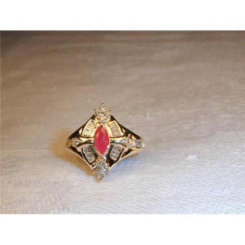 <tr><td>Title:Estate 14K YG Gold Baguette Diamond Ruby Ring</td></tr>