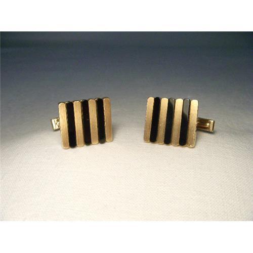 You are looking at a pair of 14K yellow gold onyx mens cufflinks. Each square cufflink features 3 stripes of natural onyx measuring 15 mm long by 3 mm wide alternating with 4 stripes of yellow gold. Each cufflink measures 5/8 of an inch wide by 7/16 of an inch long. The pair weighs 10.4 grams. They are in mint condition.