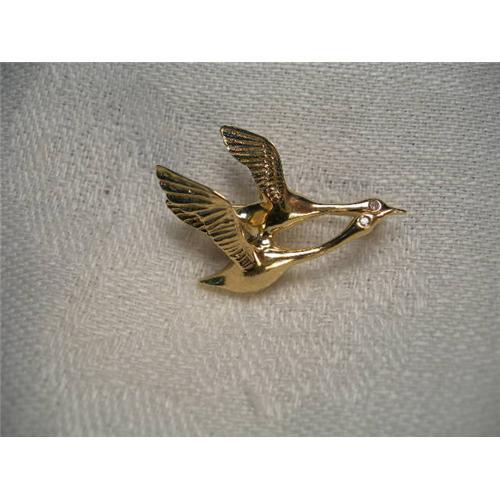 You are looking at an estate 14K yellow gold flying geese brooch. The piece features 2 brilliant round diamonds at their eyes. The brooch measures about one inch from side to side by 3/4 an inch from top to bottom. The pin weighs 3.9 grams. It is in mint condition.