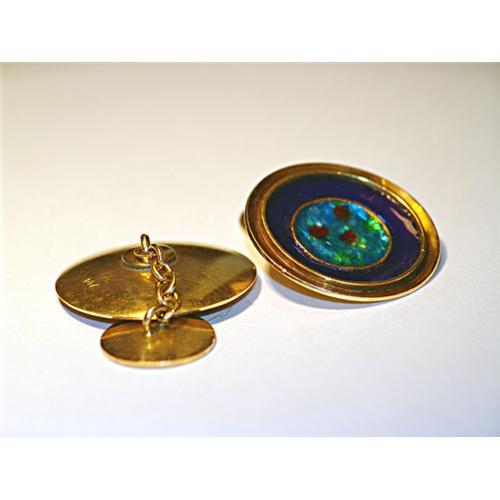 <tr><td>Title:Estate 14K YG Gold Enamel Round Mens Cufflinks</td></tr>