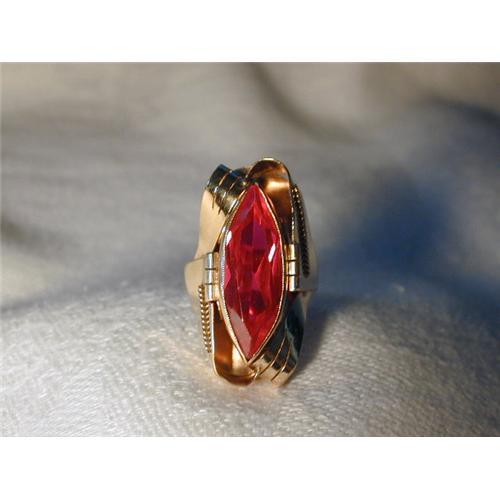 <tr><td>Title:Estate 14K YG Gold Handmade Marquise Ruby Ring</td></tr>