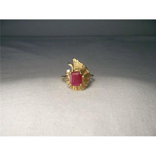 <tr><td>Title:Estate 14K YG Gold Handmade Ruby Diamond Ring</td></tr>