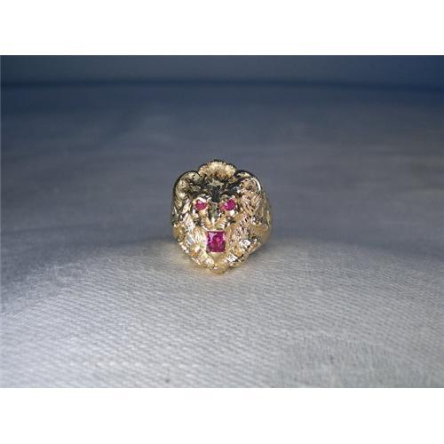 <tr><td>Title:Estate 14K YG Gold Lion Face Mens Ruby Ring</td></tr>