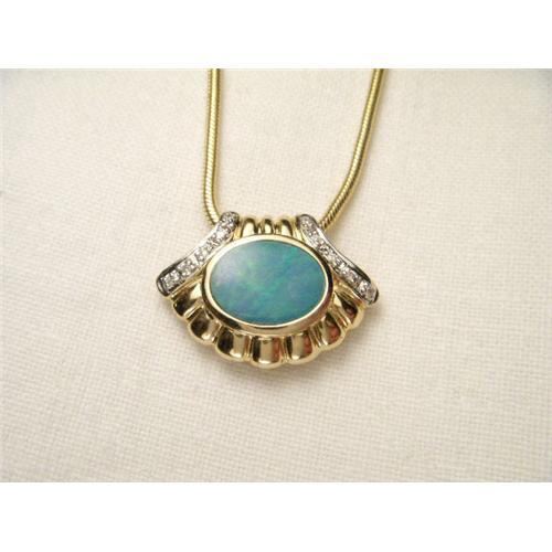<tr><td>Title:Estate 14K YG Gold Opal Diamond Shell Pendant </td></tr>